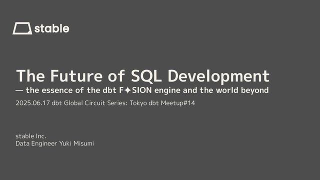 We introduce the vision of 'the future of SQL development' realized by the dbt F✦SION engine. We will provide an easy-to-understand explanation of SQL development challenges, the possibilities of static analysis and local execution with F✦SION, and the future of SQL portability, covering technical approaches and prospects.