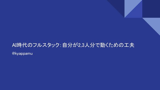 AI時代のフルスタック:自分が2,3人分で動くための工夫 @kyappamu