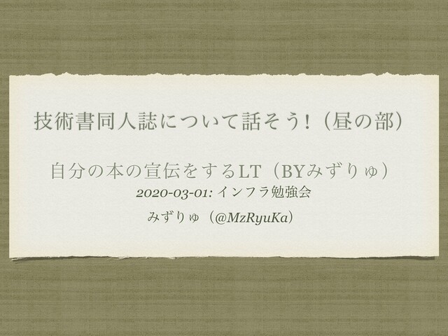 2020.03.01の「インフラ勉強会 技術書同人誌について語ろう!(昼の部)」でLTした時の資料。