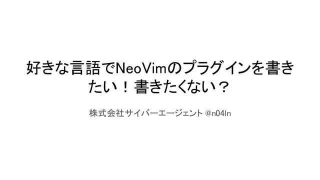 好きな言語でNeoVimのプラグインを書き たい!書きたくない? 株式会社サイバーエージェント @n04ln