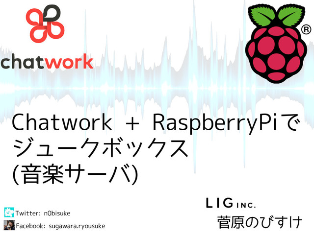 Chatwork + RaspberryPiで ジュークボックス (音楽サーバ) 菅原のびすけ Twitter: n0bisuke Facebook: sugawara.ryousuke