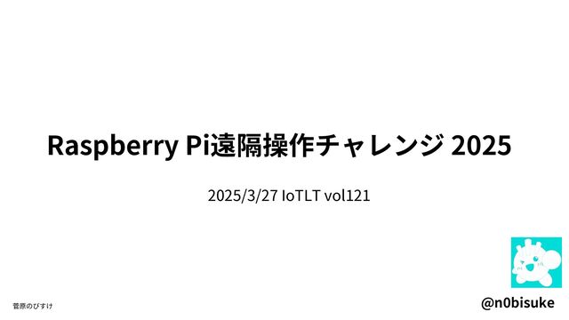 Raspberry Pi遠隔操作チャレンジ 2025 2025/3/27 IoTLT vol121 菅原のびすけ @n0bisuke