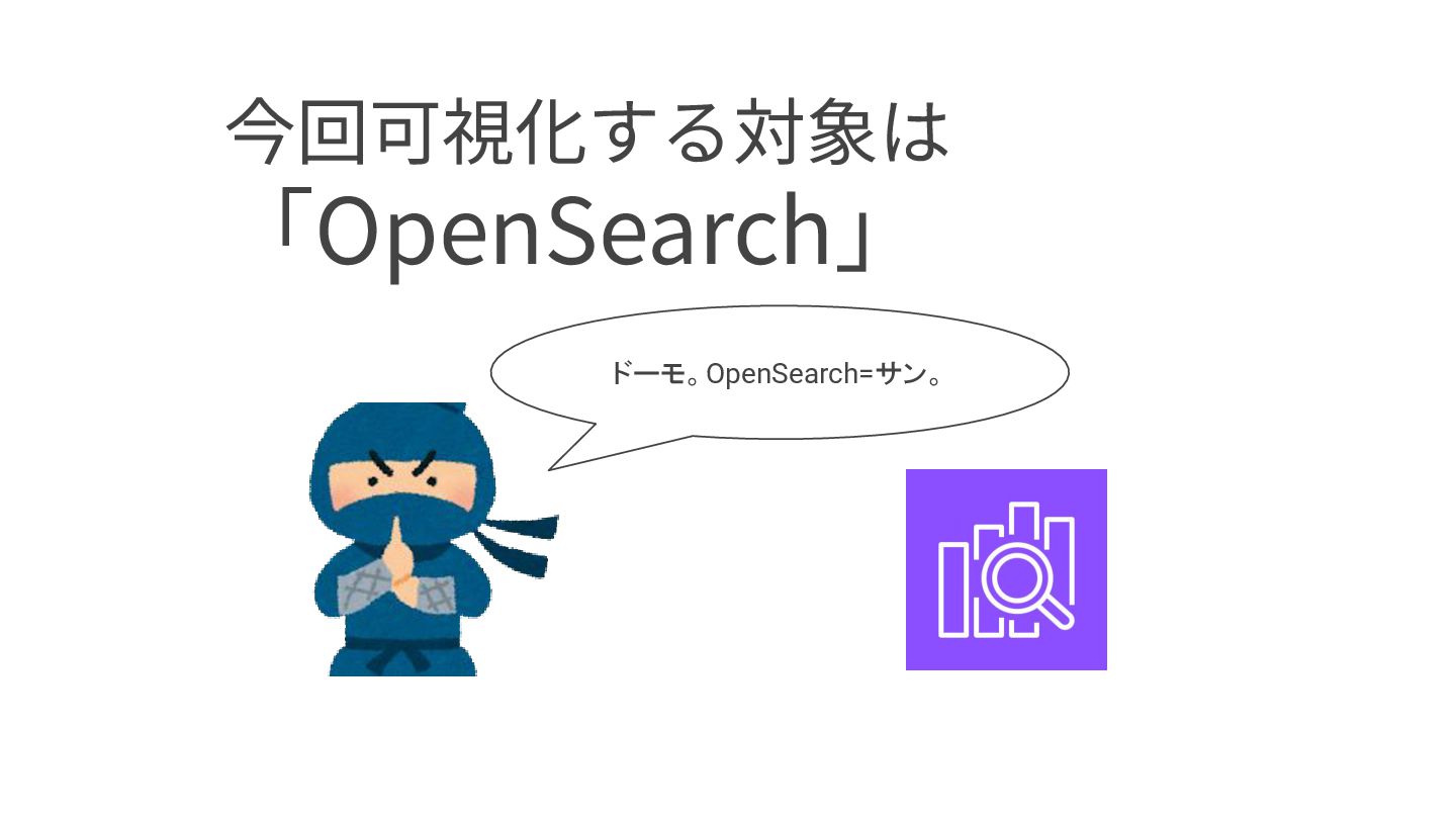 今回可視化する対象は 「OpenSearch」 ドーモ。OpenSearch=サン。