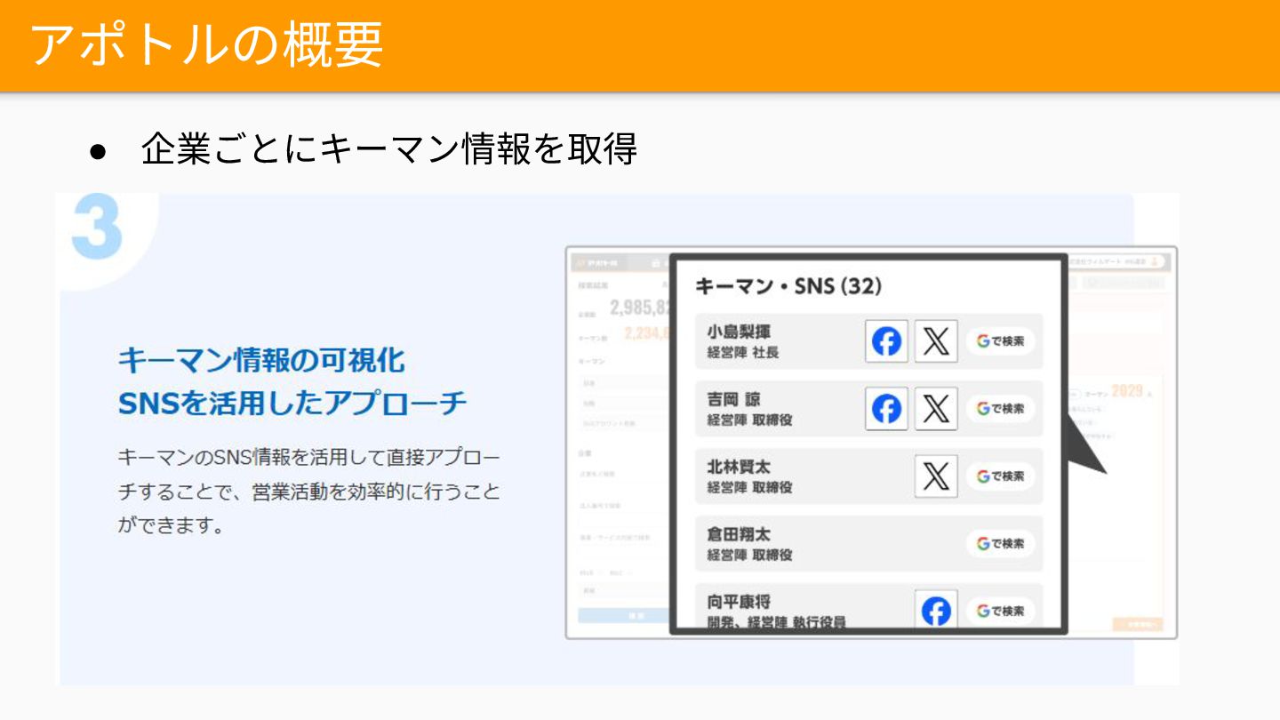 アポトルの概要 • 企業ごとにキーマン情報を取得