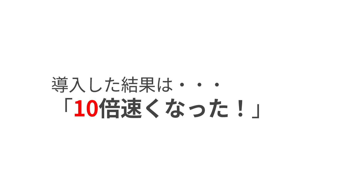 導⼊した結果は‧‧‧ 「10倍速くなった!」