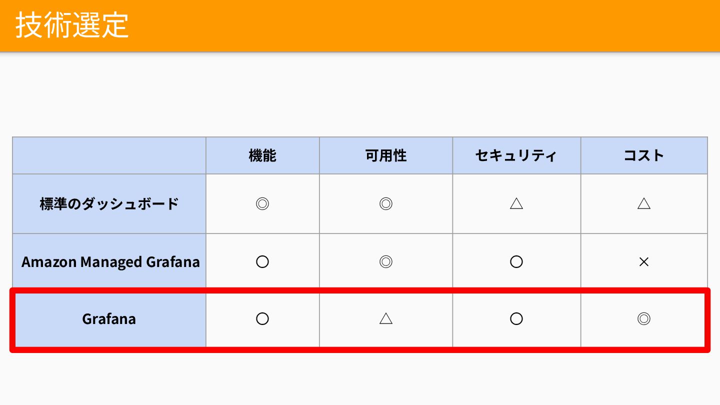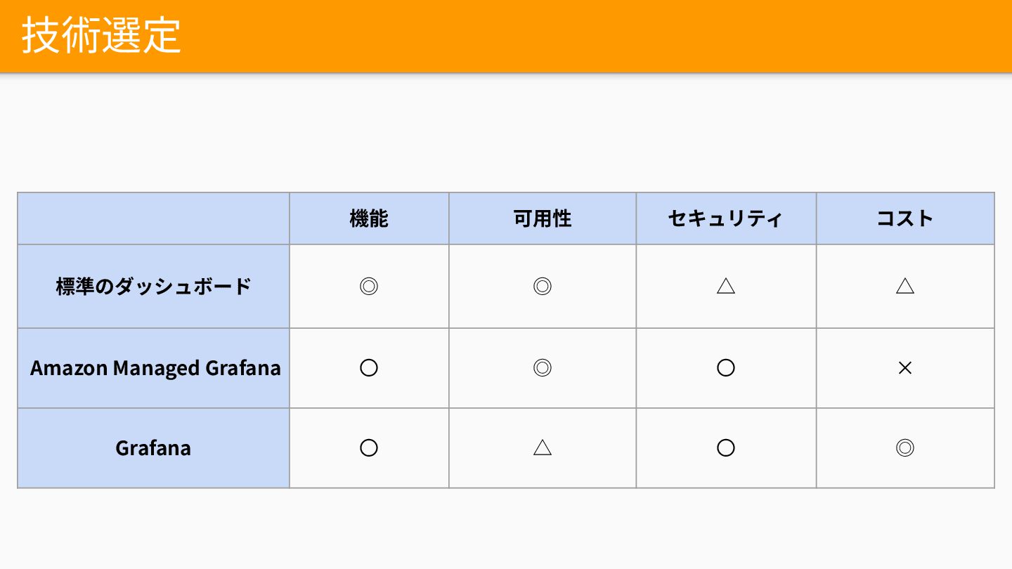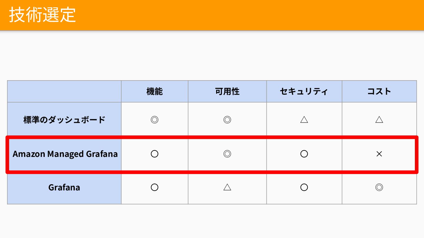 Amazon Managed Grafana 〇 ◎ 〇 × Grafana 〇 △ 〇 ◎