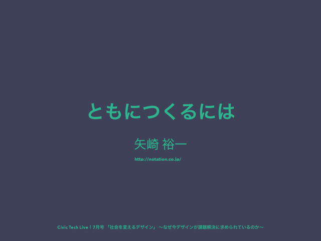 ともにつくるには Civic Tech Live!7月号 「社会を変えるデザイン」 ~なせ...