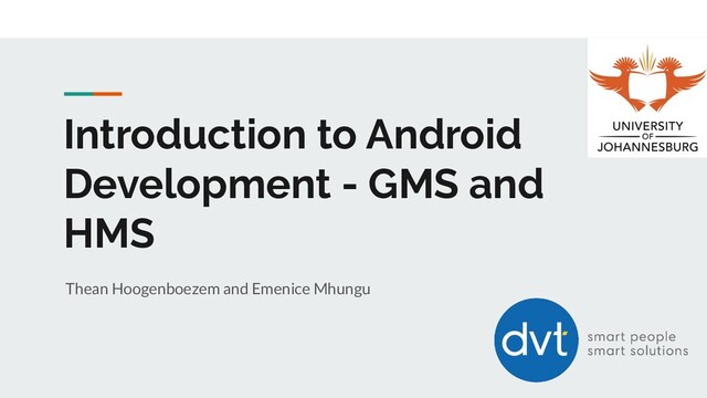 • Starting Basic Application ◦ Templates • Android Studio Features • Intro to GMS and overview • Intro to HMS ◦ Why important ◦ Impact on platform • Example Code • Questions