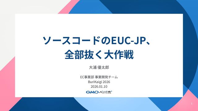 1 ソースコードのEUC-JP、 全部抜く⼤作戦 ⼤浦 優太郎 EC事業部 事業開発チーム BuriKaigi 2026 2026.01.10
