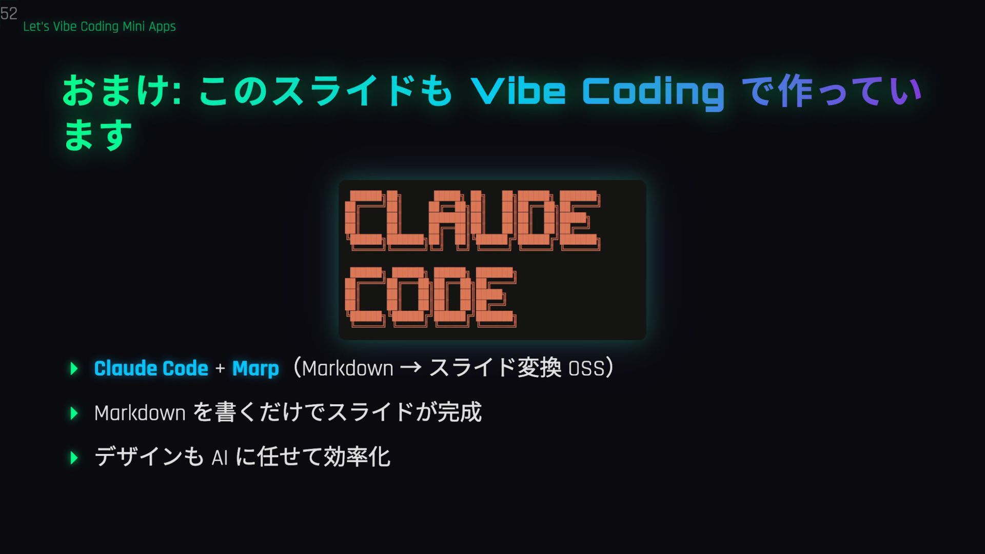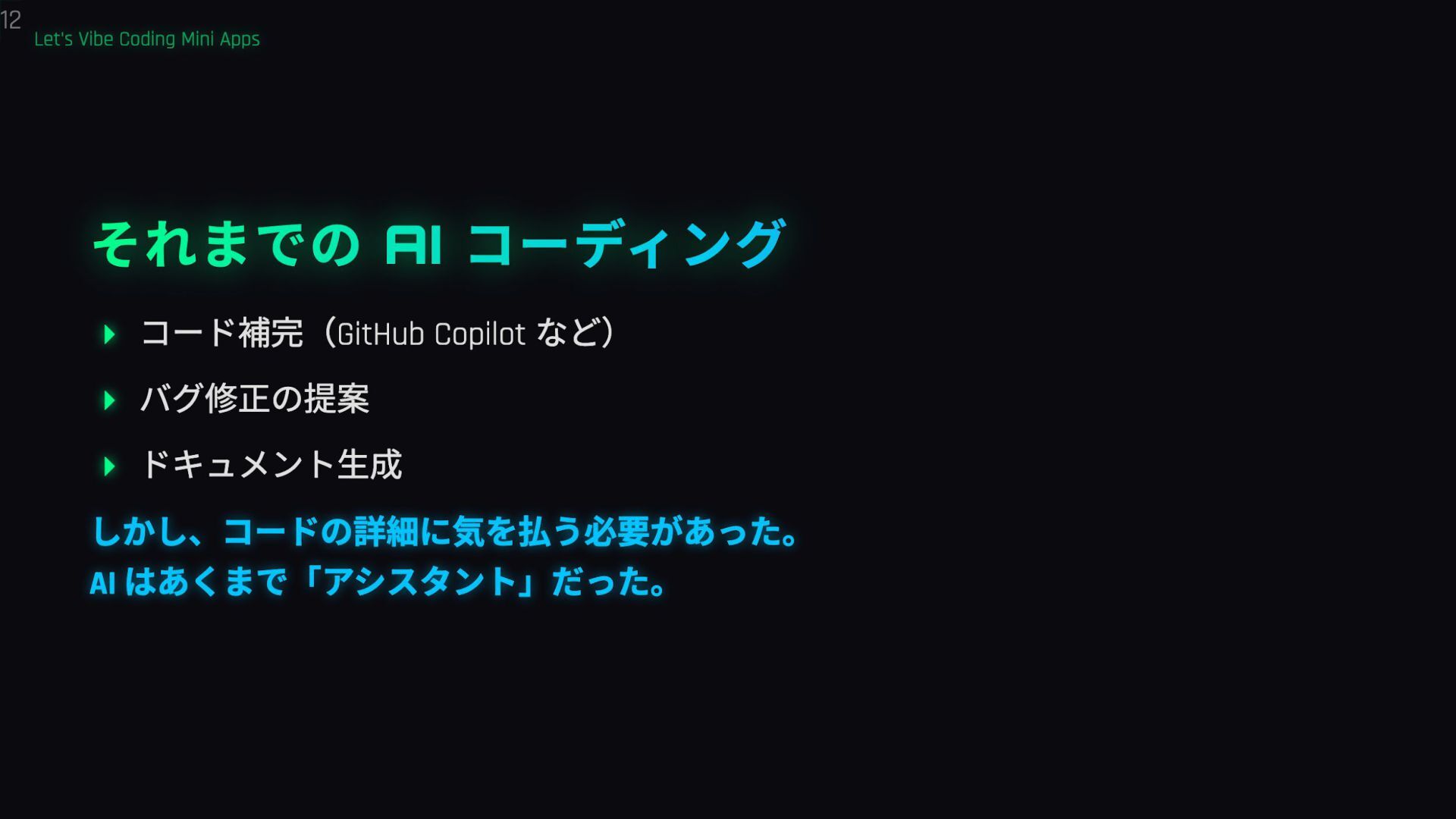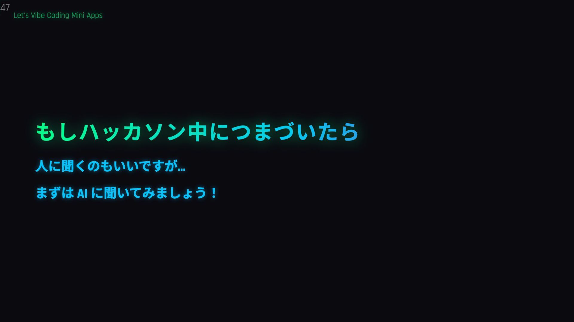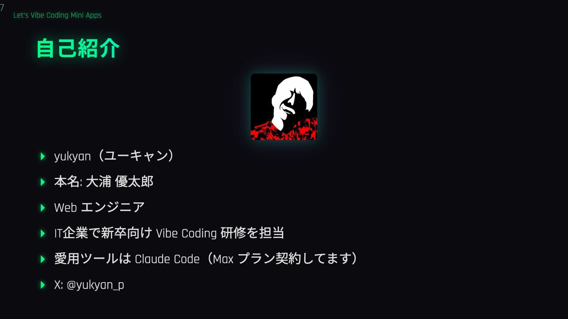 Base Japan, Centrum 主催の「大喜利.hack Vibe Coding Hackathon キックオフ + ワークショップ」のワークショップで登壇した際のスライドです。