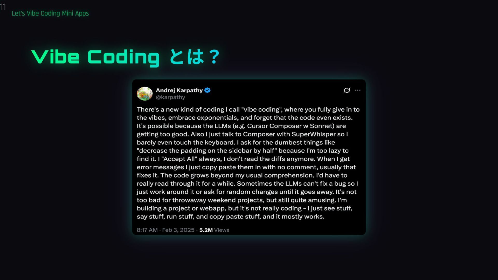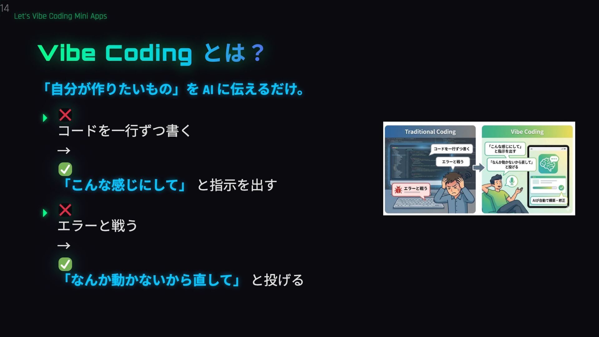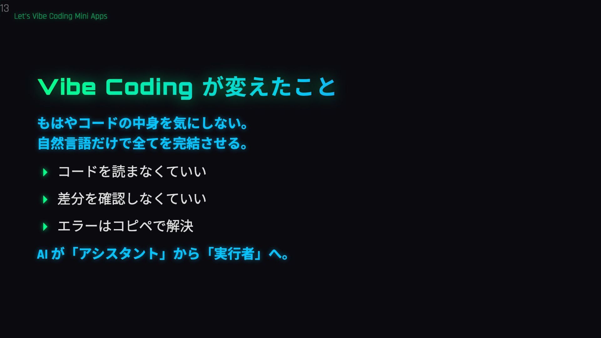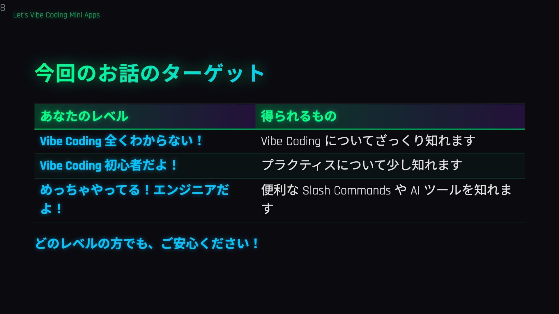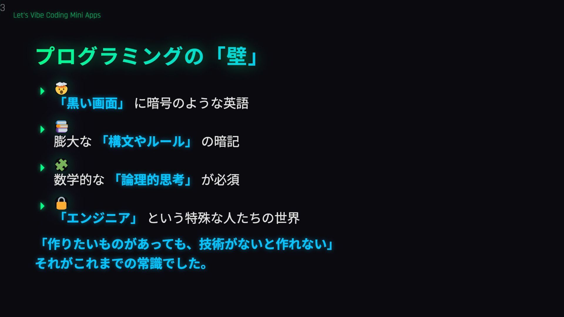 Base Japan, Centrum 主催の「大喜利.hack Vibe Coding Hackathon キックオフ + ワークショップ」のワークショップで登壇した際のスライドです。