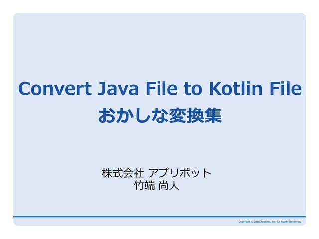 Convert Java File to Kotlin File おかしな変換集 株式会社 アプリボット ⽵端