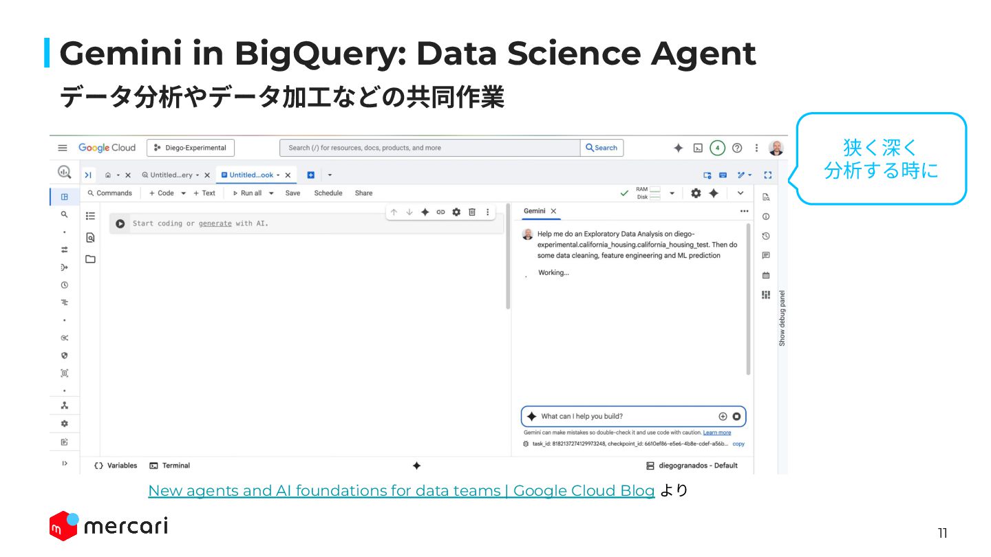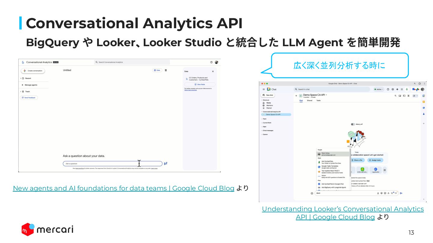 Analytics API Understanding Looker’s Conversational Analytics API | Google Cloud Blog より New agents and AI foundations for data teams | Google Cloud Blog より 広く深く並列分析する時に
