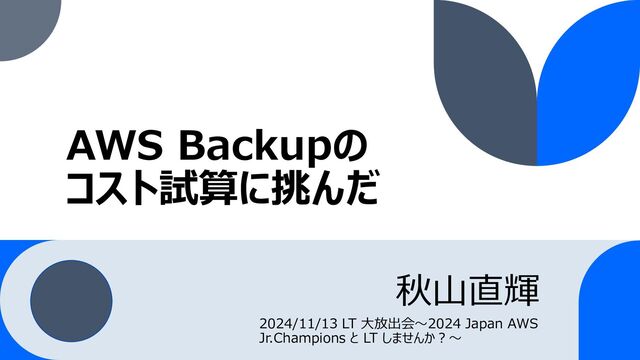 AWS Backupの コスト試算に挑んだ 秋山直輝 2024/11/13 LT 大放出会〜2024 Japan AWS Jr.Champions