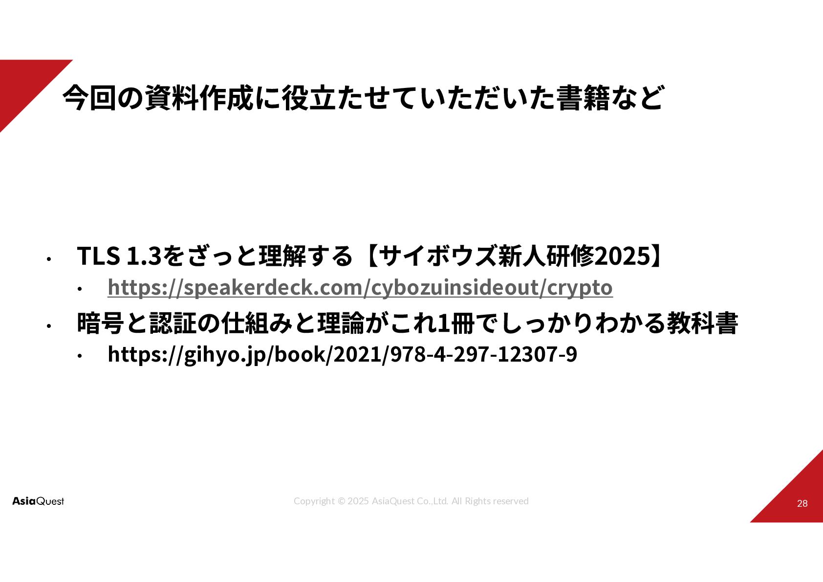 • • https://speakerdeck.com/cybozuinsideout/crypto • • https://gihyo.jp/book/2021/978-4-297-12307-9
