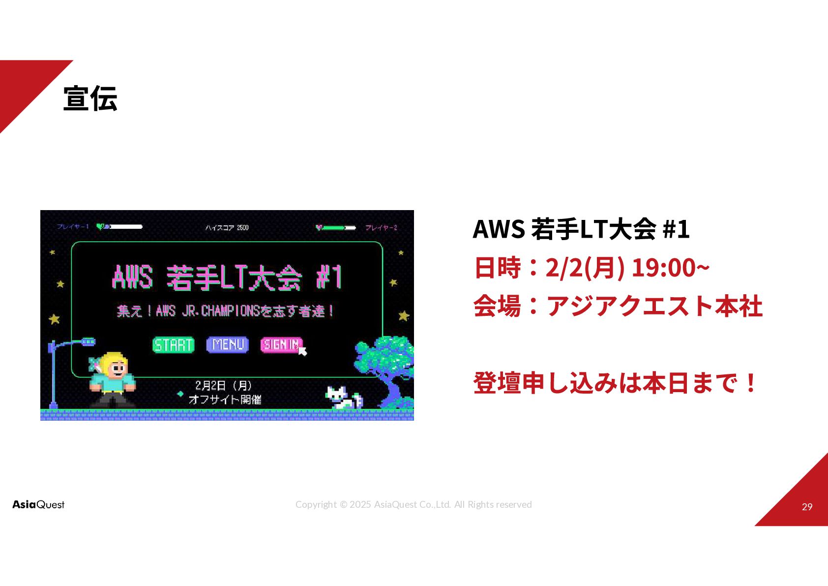 © 2025 AsiaQuest Co.,Ltd. All Rights reserved Pure Challenge with You 2025.12.28 JAWS-UG 茨城 #10 大年末LT大会!