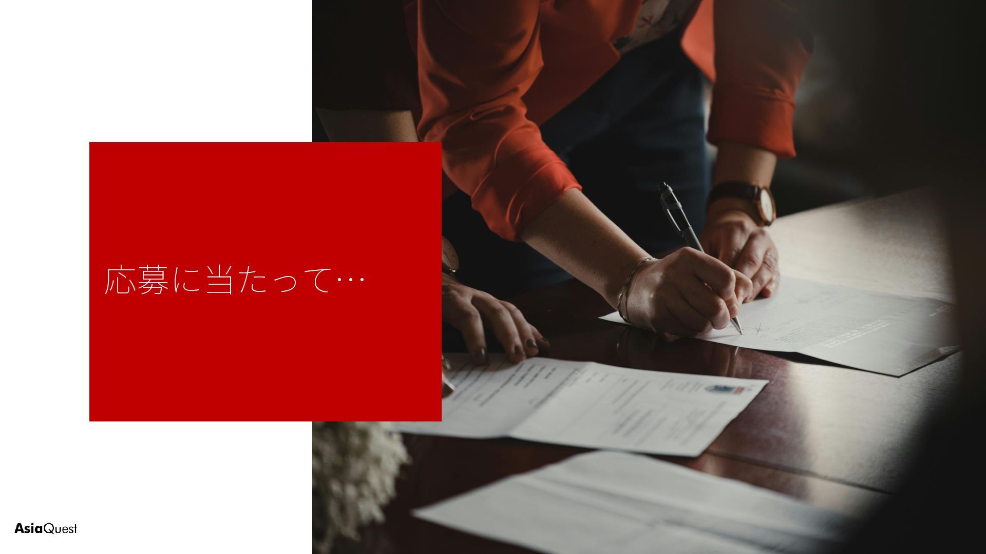Copyright © 2025 AsiaQuest Co.,Ltd. All Rights reserved Copyright © 2025 AsiaQuest Co.,Ltd. All Rights reserved 応募に当たって…