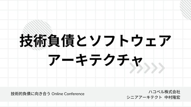 技術負債とソフトウェア アーキテクチャ 技術的負債に向き合う Online Conference ハコベル株式会社 シニアアーキテクト 中村隆宏