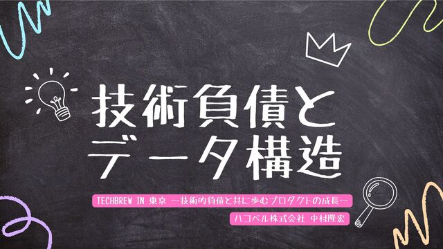 技術負債と データ構造 ハコベル株式会社 中村隆宏 TECHBREW IN 東京 〜技術的負債と共に歩むプロダクトの成長〜