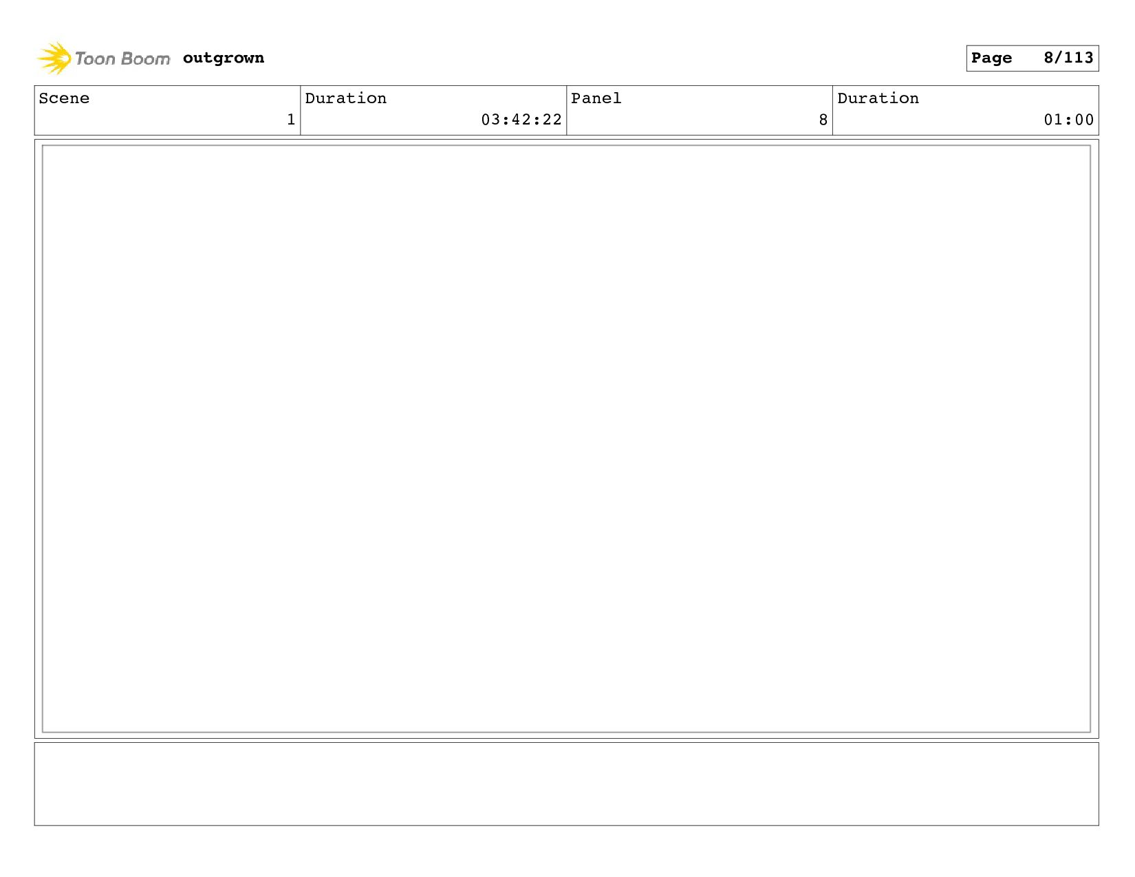 Scene 1 Duration 03:42:22 Panel 1 Duration 01:00 outgrown Page