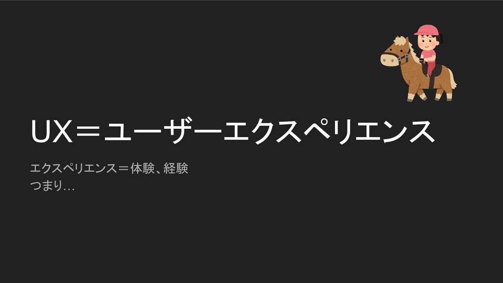 UX=ユーザーエクスペリエンス エクスペリエンス=体験、経験 つまり…
