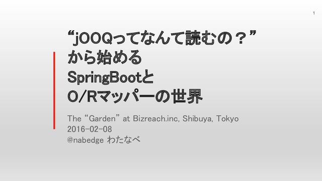 “jOOQってなんて読むの?” から始める SpringBootと O/Rマッパーの世界 The “Garden” at Bizreach.inc, Shibuya, Tokyo