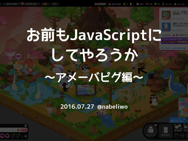 お前もJavaScriptに してやろうか 〜アメーバピグ編〜 2016.07.27 @nabeliwo