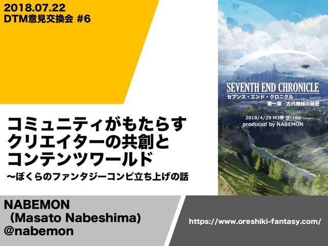 多くの人と共創しながら、自らの企画を世の中に広げていく上で役立つ「コミュニティ」という考え方の紹介と、それを音楽系同人イベントM3にて実践してみた事例を紹介します。