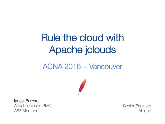 Apache jclouds talk given in Vancouver, at ApacheCon NA 2016.