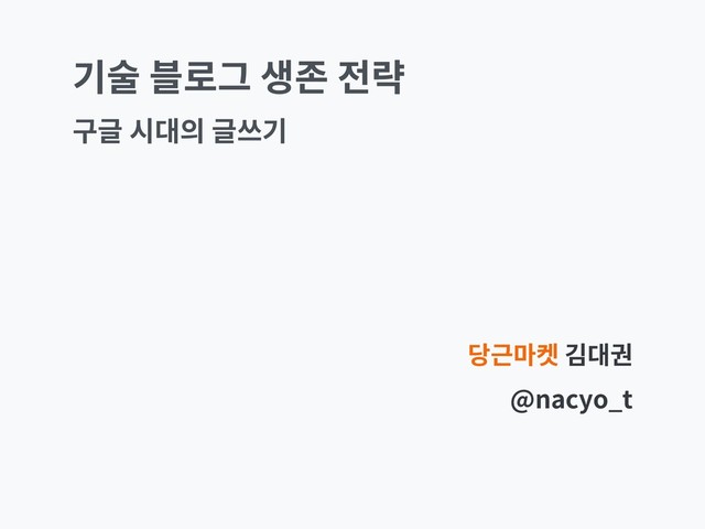 기술 블로그 생존 전략 당근마켓 김대권 @nacyo_t 구글 시대의 글쓰기