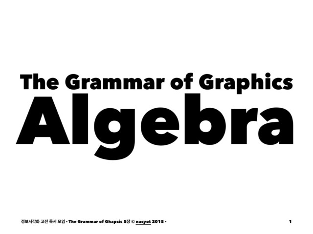 이 발표는 정보시각화 고전 스터디에서 발표된 내용으로 Leland Wilkinson의 The Grammar of Graphics의 제 5장 Agebra 파트를 보충 설명하고 있습니다.