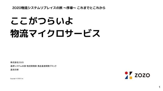 ここがつらいよ 物流マイクロサービス 株式会社ZOZO 基幹システム本部 物流開発部 発送基盤開発ブロック 真田洋輝 Copyright © ZOZO,