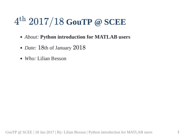 import odeint # use RungeKutta 4 def pend(y, t, b, c): # function definition return np.array([y[1], b*y[1] c*np.sin(y[0])]) b, c = 0.25, 5.0 # tuple assignment y0 = np.array([np.pi 0.1, 0.0]) t = np.linspace(0, 10, 101) # on [0,10] with 101 points sol = odeint(pend, y0, t, args=(b, c)) plt.plot(t, sol[:, 0], 'b', label=r'$\theta(t)$')# blue plt.plot(t, sol[:, 1], 'g', label=r'$\omega(t)$')# green plt.legend(loc='best') plt.xlabel('t') plt.grid() plt.savefig("figures/Pendulum_solution.png") plt.show() GouTP @ SCEE | 18 Jan 2017 | By: Lilian Besson | Python introduction for MATLAB users 20