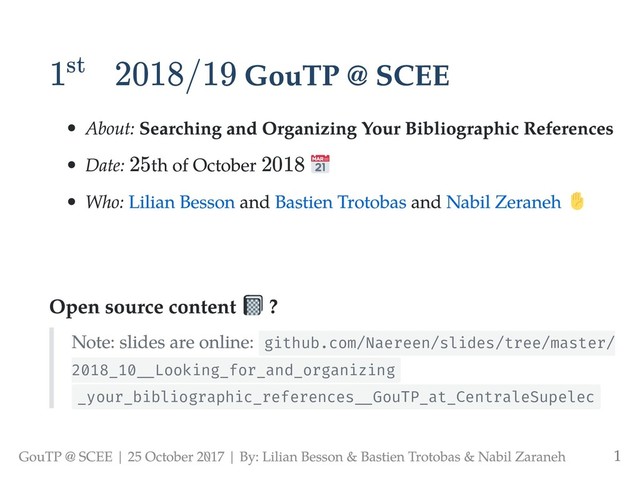 Given on Thursday 25th of October, 2018, by Lilian Besson.