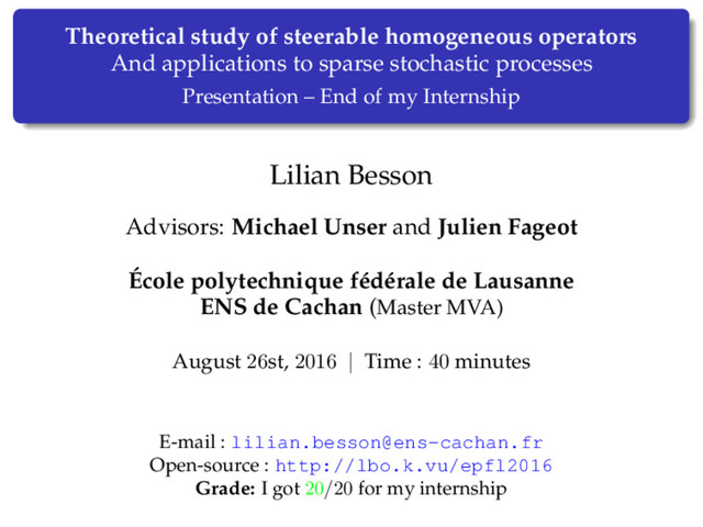 5 months internship in Lausanne, Switzerland, at EPFL in the BIG team, under the supervision of Julien Fageot and Michael Unser.