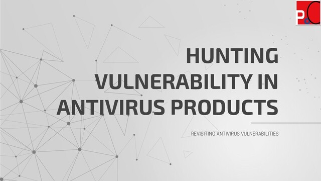 security issue Everyone is using Antivirus, either organizations or individual It might looks like nothing, but the impact is large Vulnerability is everywhere