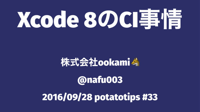 Xcode 8ͷCIࣄ גࣜձࣾookami! @nafu003 2016/09/28 potatotips #33