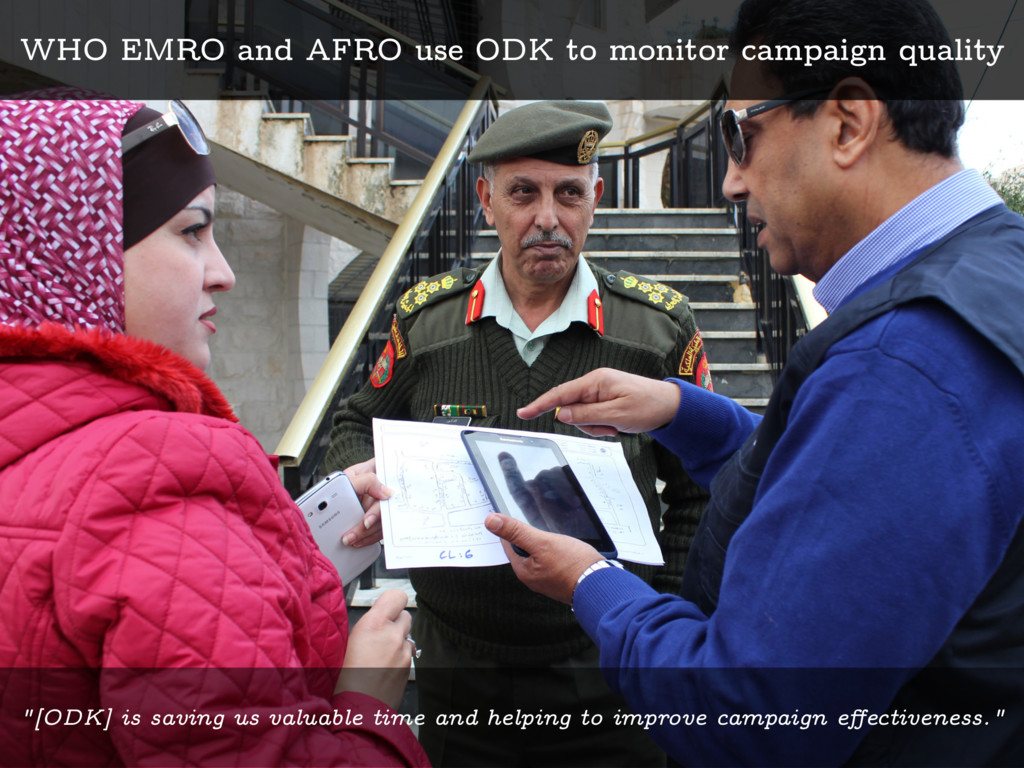* For governments working to end polio, access to accurate and timely information makes a world of difference. ODK is used in Jordan, Afghanistan, Pakistan, Somalia, and South Sudan as a key tool in mass polio vaccination campaign quality control. Video: https://goo.gl/AisNUh