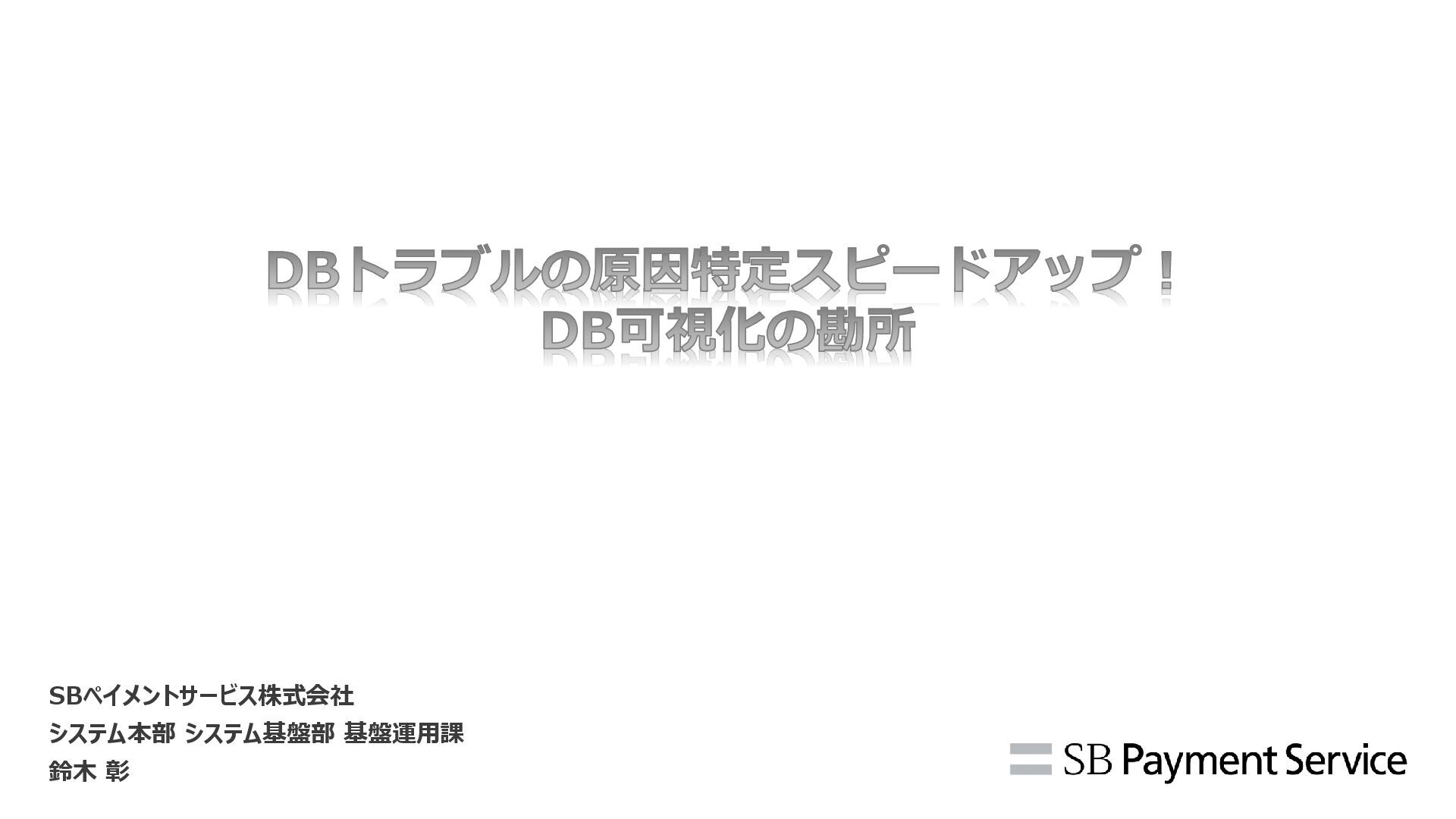 DBトラブルの原因特定スピードアップ! DB可視化の勘所 SBペイメントサービス株式会社 システム本部 システム基盤部 基盤運用課 鈴木 彰