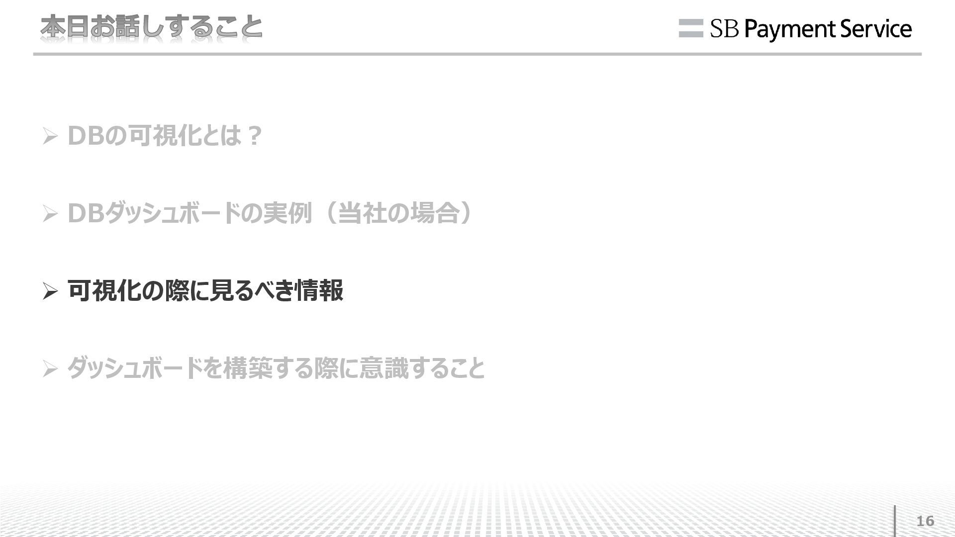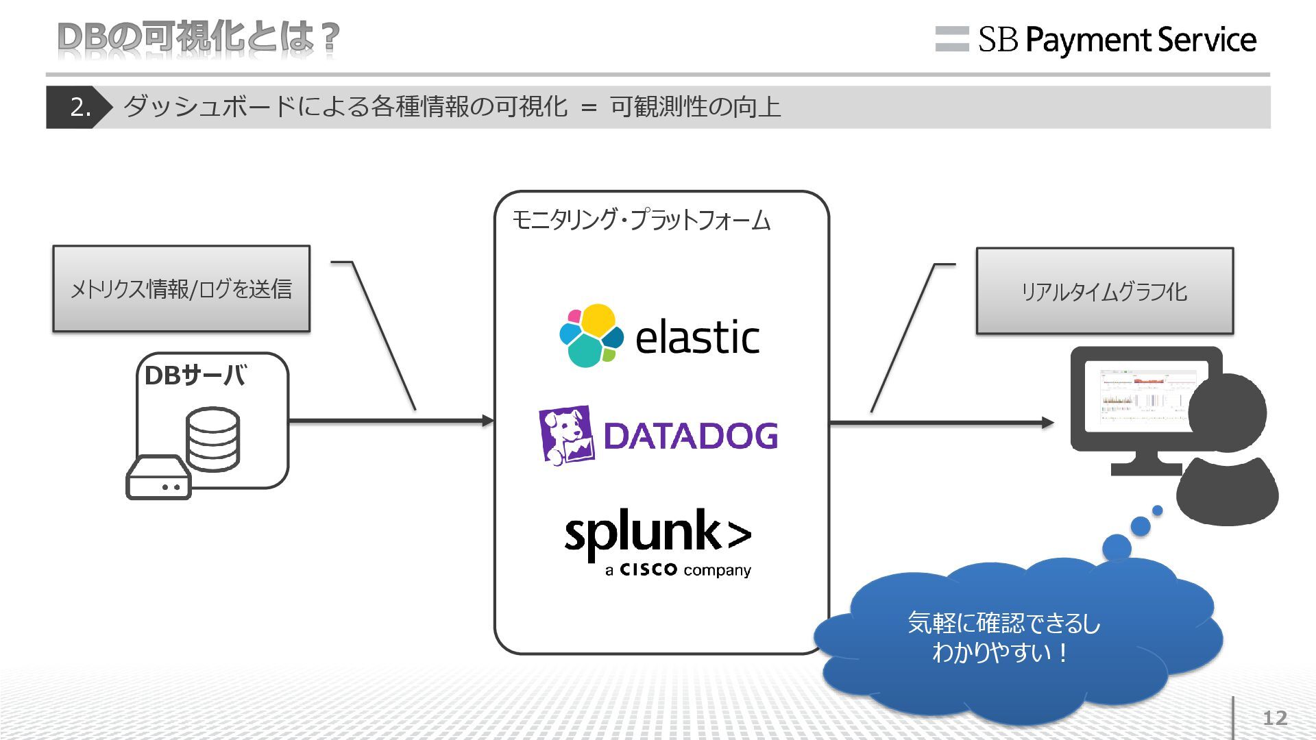 DBの稼働状況やリソース情報を可視化する際のポイントを実例を元に解説しています。