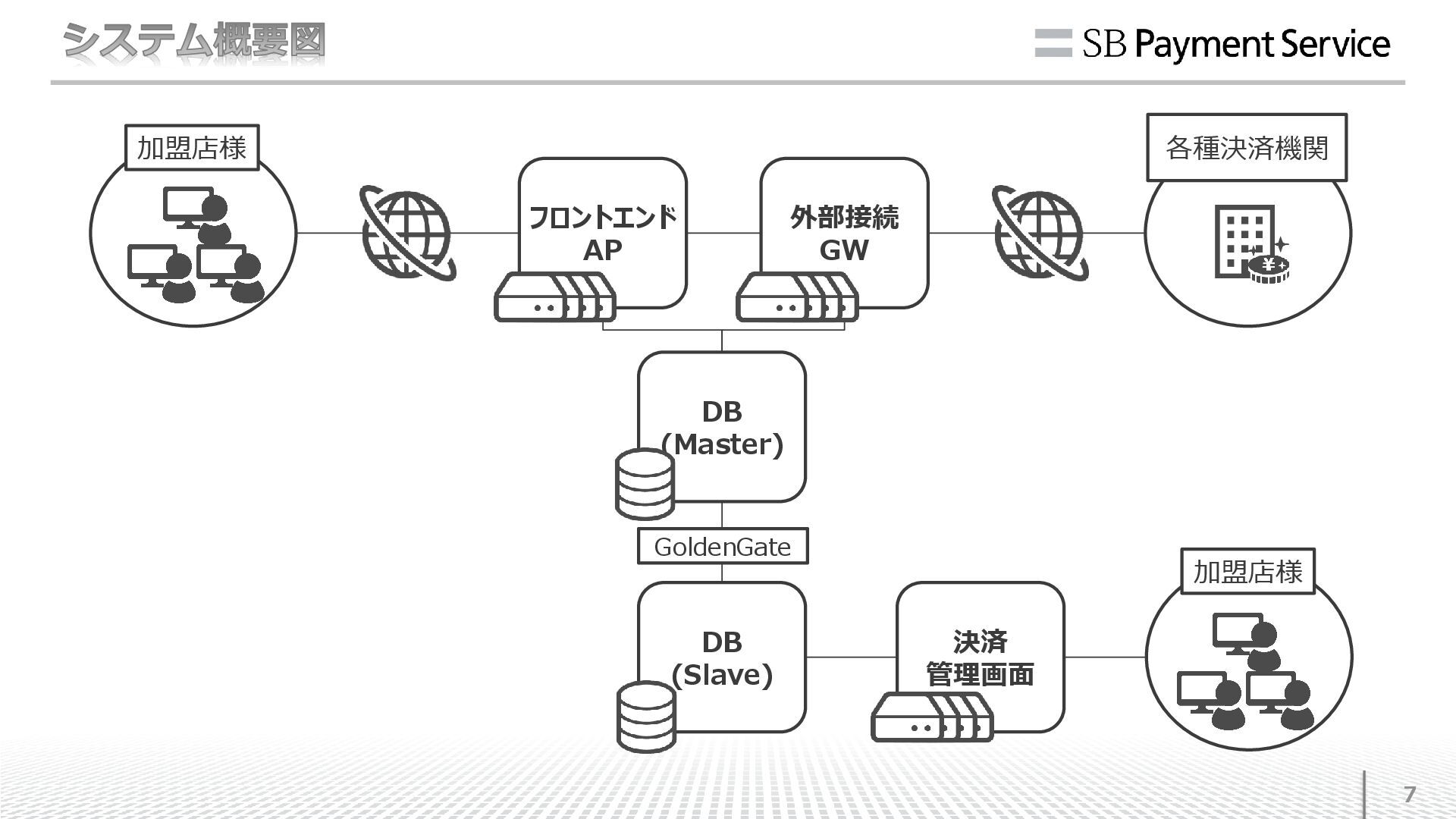 システム概要図 7 加盟店様 フロントエンド AP 外部接続 GW DB (Master) DB