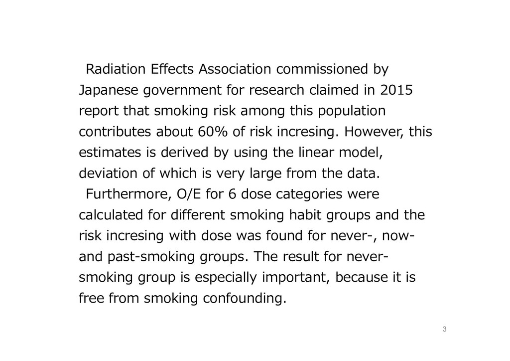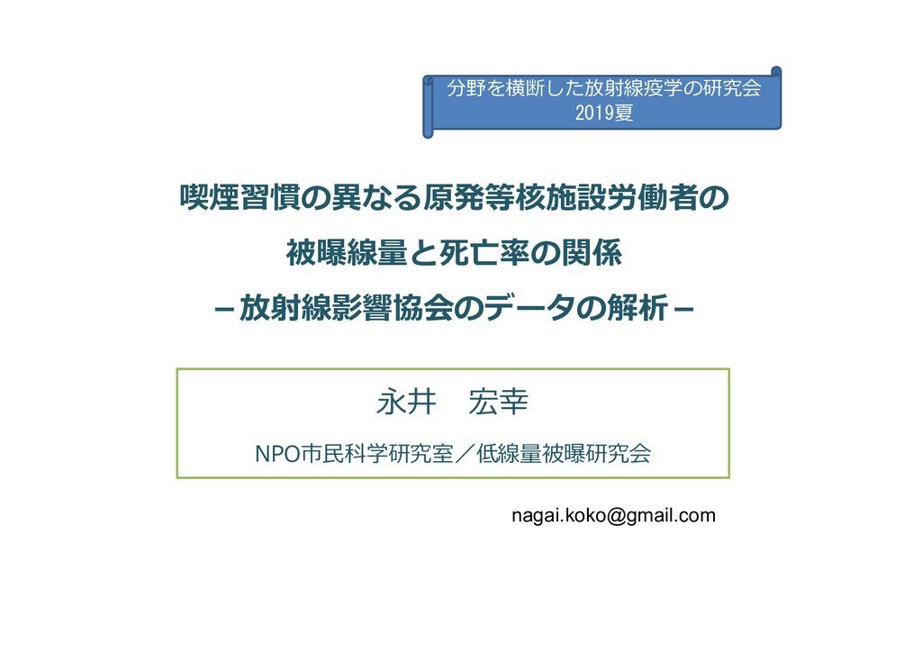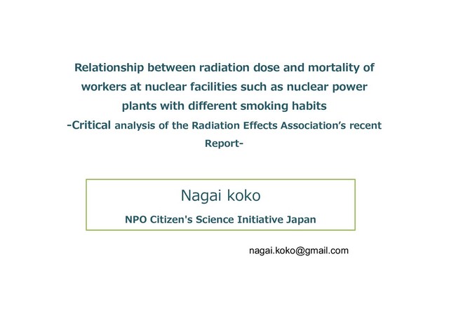 facilities such as nuclear power plants with different smoking habits -Critical analysis of the Radiation Effects Association’s recent Report- Nagai koko NPO Citizen's Science Initiative Japan [email protected]