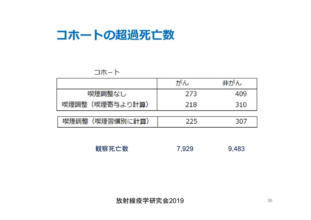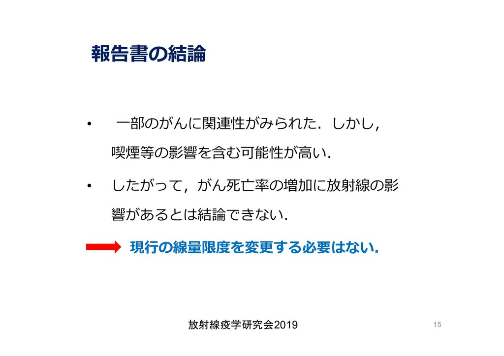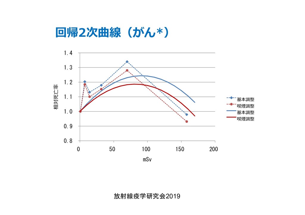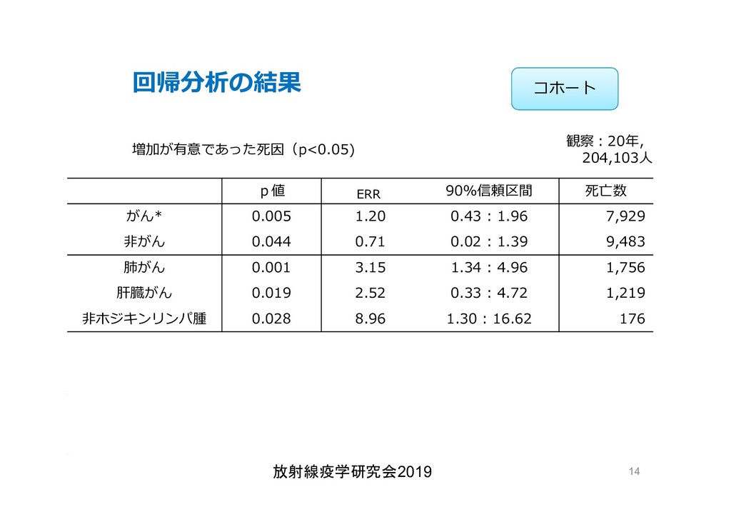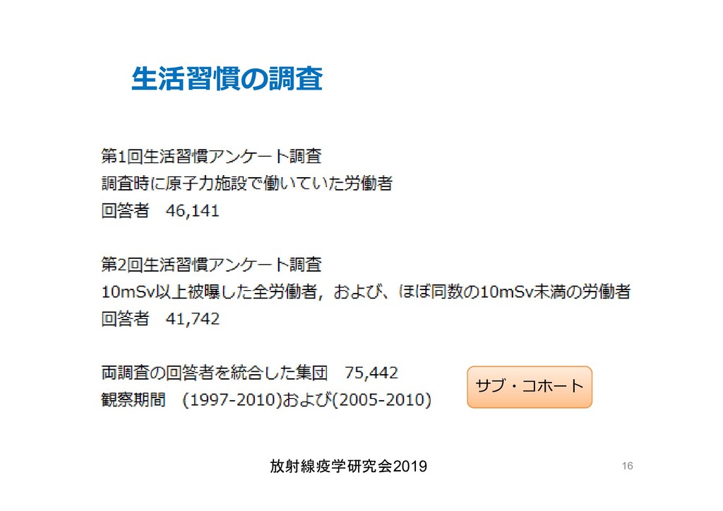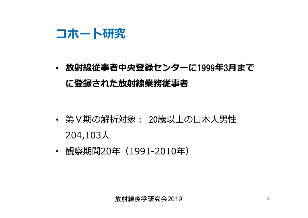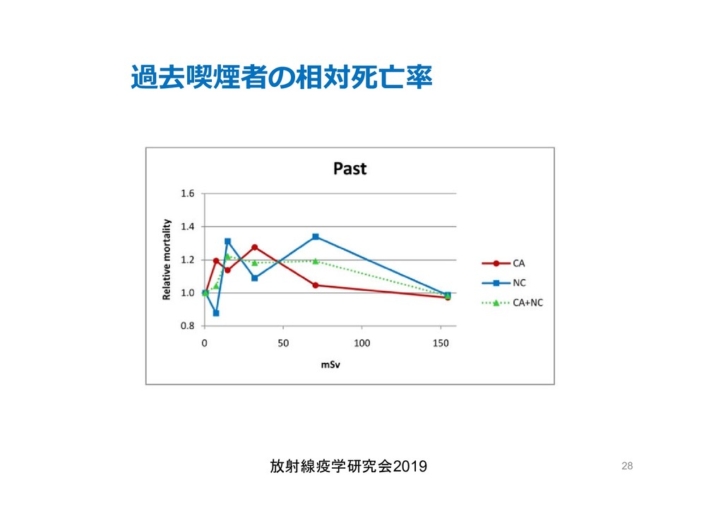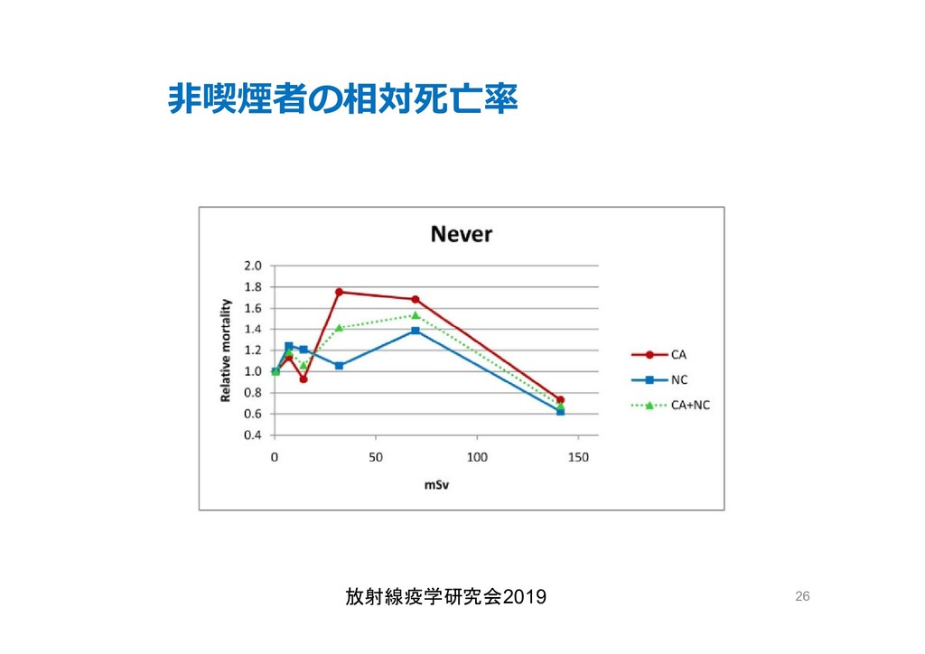 cancer risk estimates of mortality among male nuclear workers in Japan, 1999–2010, Shin’ichi Kudo et al, J. Radiol. Prot.38 357, 2018 Shin’ichi Kudo et al, J. Radiol. Prot.38 357, 2018 • 「がんリスクは10ミリシーベルトでも有意に増加」, 松崎 道幸,日本の科学者 Vol.48,No.1,January 2013 放射線疫学研究会2019 42