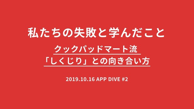 APP DIVE vol.2 のテーマLTにて『クックパッドマート流「しくじり」との向き合い方』という副題でお話ししたものです。 https://eventregist.com/e/appdivevol2?lang=ja_JP