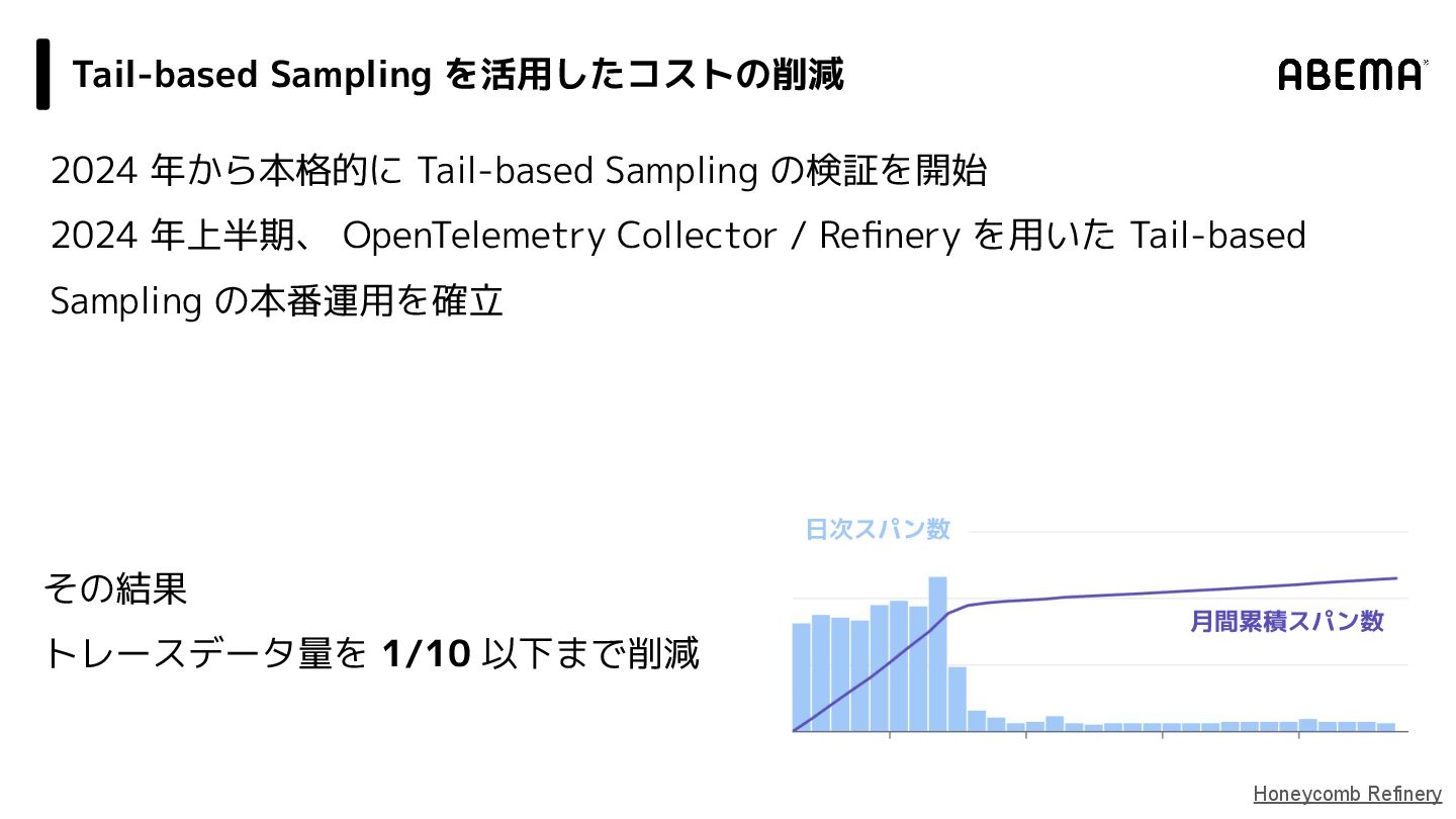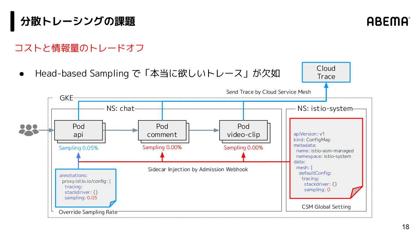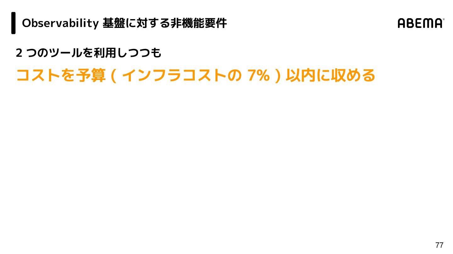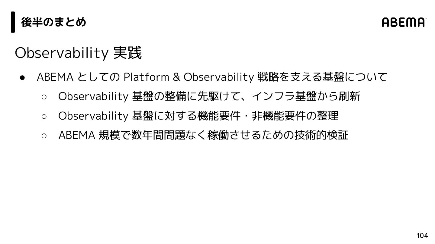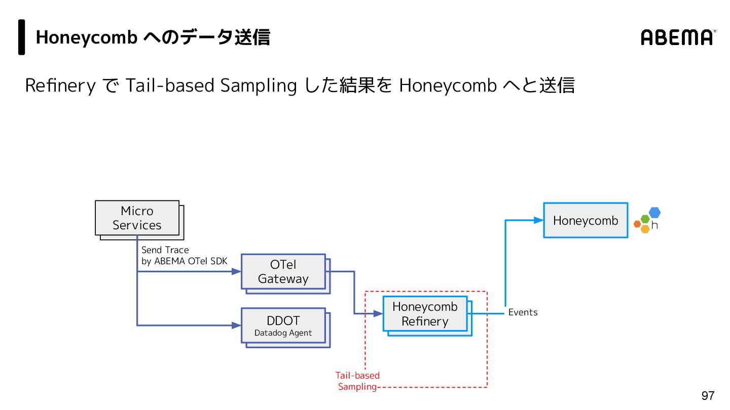 / Grafana Alloy 20 vm insert Victria Metrics vm insert Grafana Pyroscope vm insert Grafana Loki Grafana vm insert Grafana Tempo vm insert Promtail vm insert OTel Gateway vm insert Prometheus Agent Mode vm insert Grafana Alloy vm insert OTel Collector vm insert Micro Services Scraping Profiles Logs Metrics gRPC / HTTP Grafana 活用強化 Send Trace by ABEMA OTel SDK