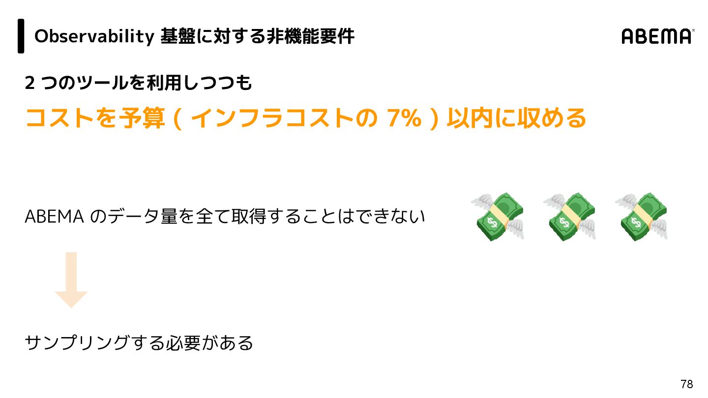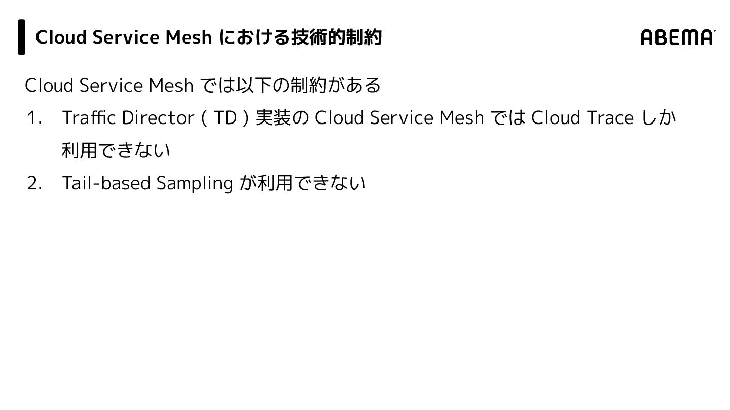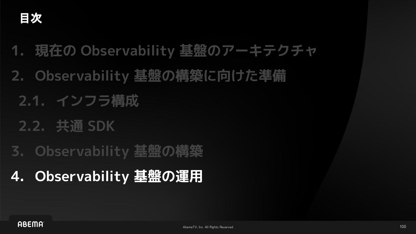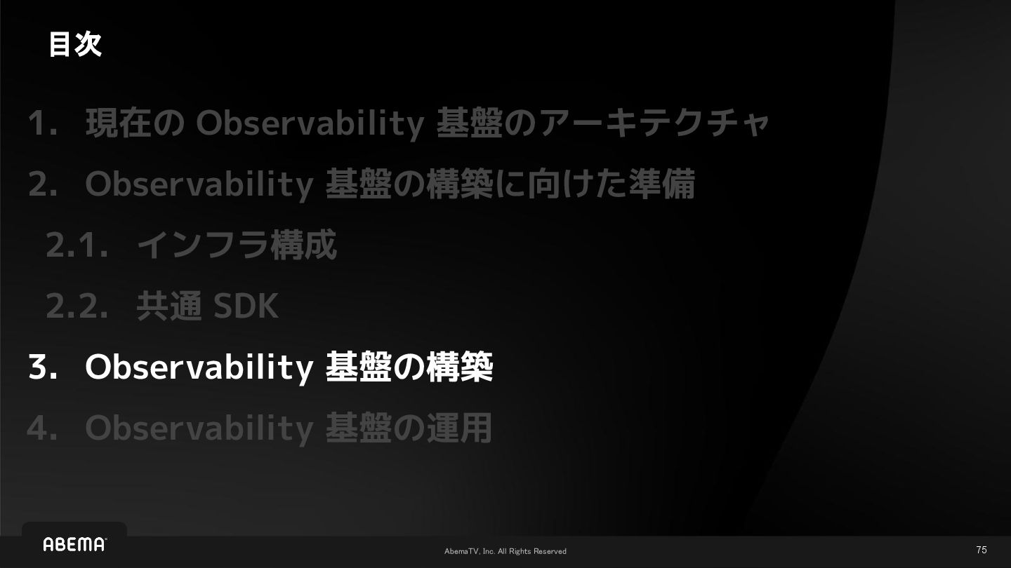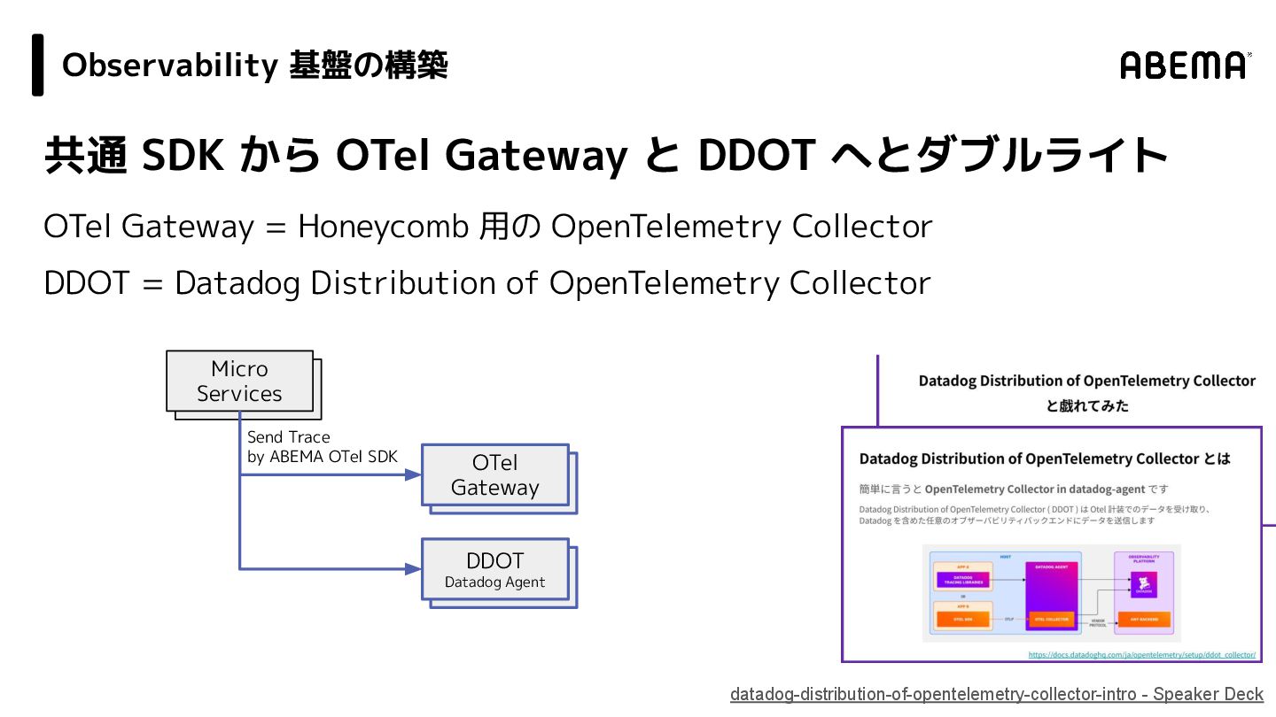 / Grafana Alloy 20 vm insert Victria Metrics vm insert Grafana Pyroscope vm insert Grafana Loki Grafana vm insert Grafana Tempo vm insert Promtail vm insert OTel Gateway vm insert Prometheus Agent Mode vm insert Grafana Alloy vm insert OTel Collector vm insert Micro Services Scraping Profiles Logs Metrics gRPC / HTTP Grafana 活用強化 Send Trace by ABEMA OTel SDK