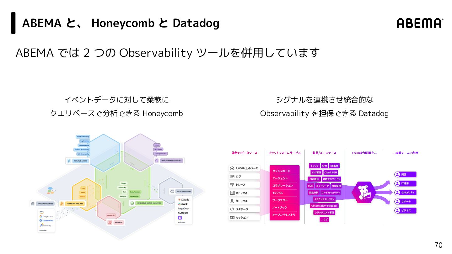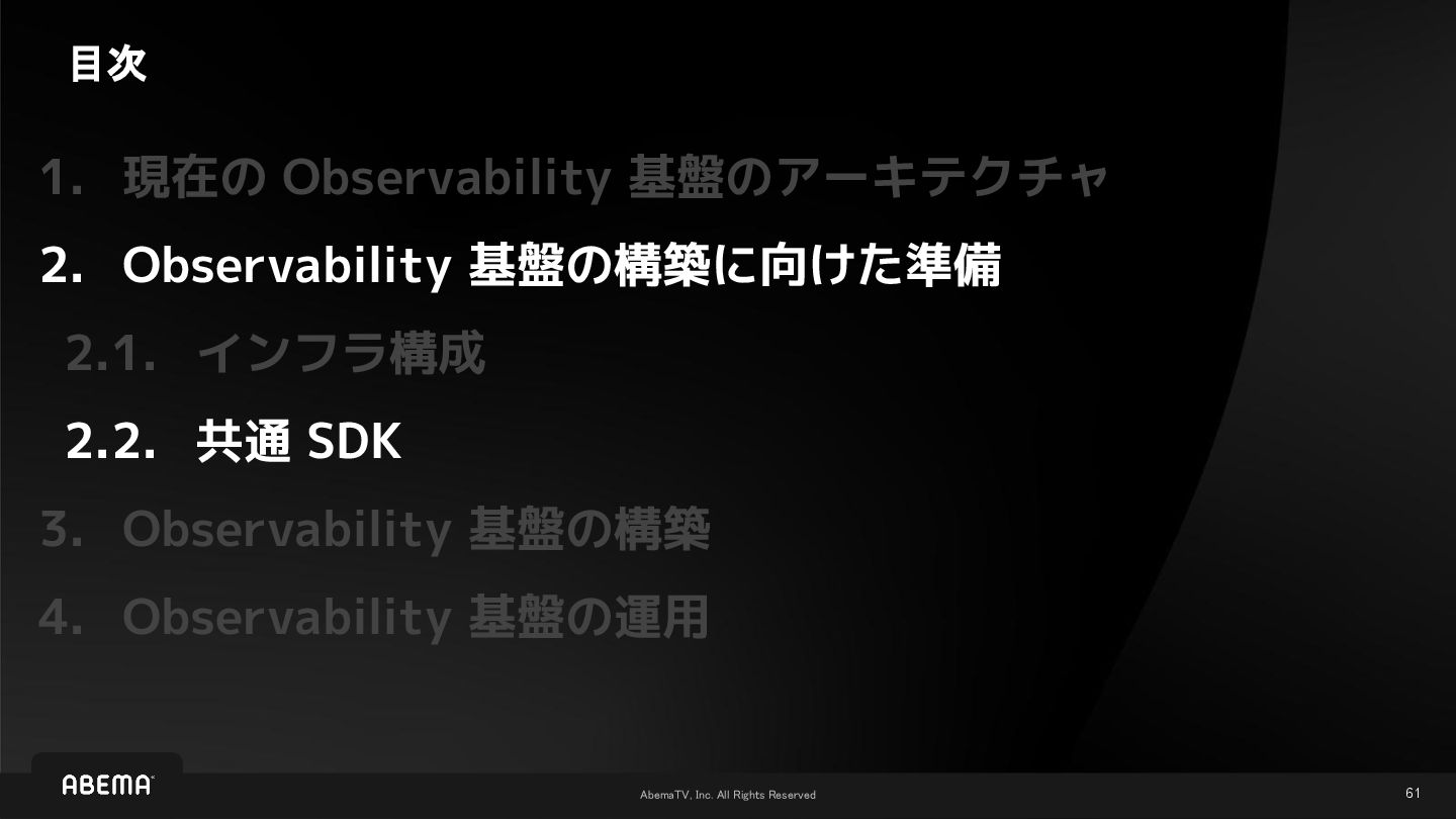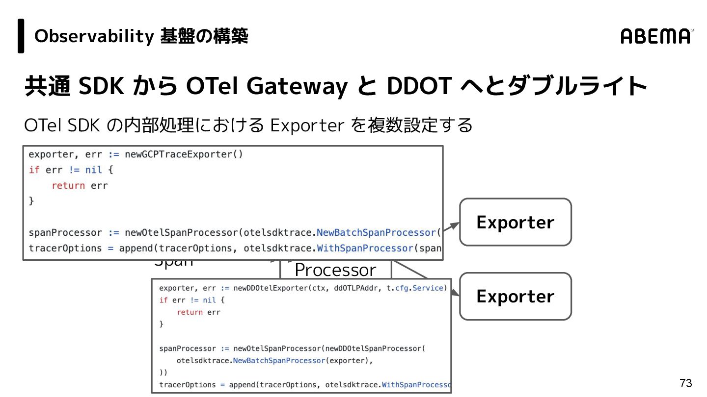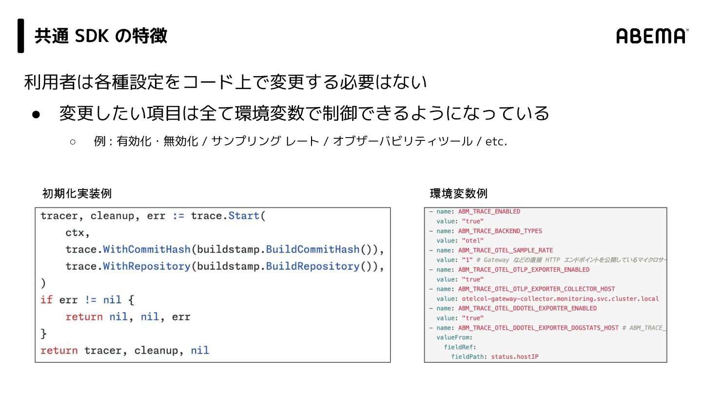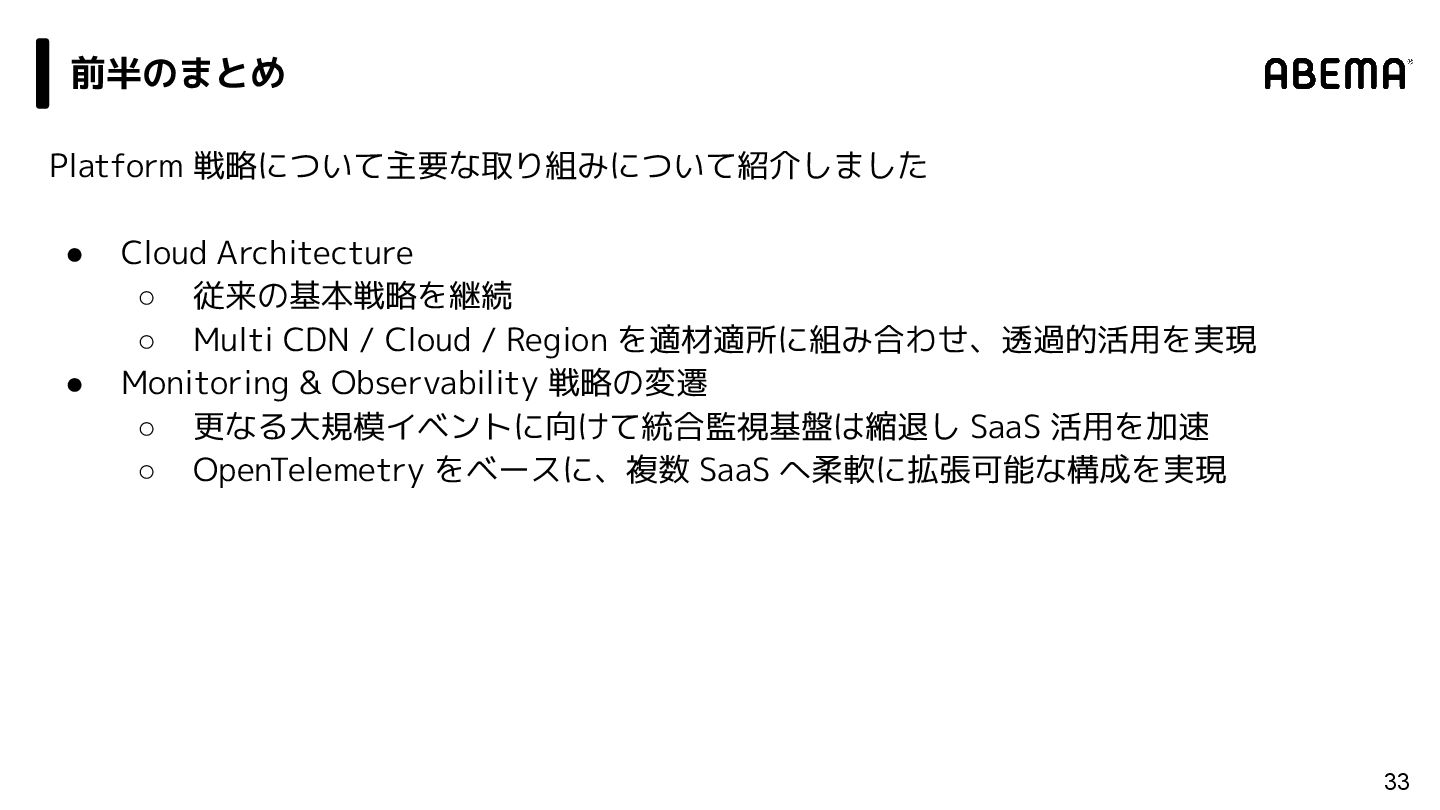 / Grafana Alloy 20 vm insert Victria Metrics vm insert Grafana Pyroscope vm insert Grafana Loki Grafana vm insert Grafana Tempo vm insert Promtail vm insert OTel Gateway vm insert Prometheus Agent Mode vm insert Grafana Alloy vm insert OTel Collector vm insert Micro Services Scraping Profiles Logs Metrics gRPC / HTTP Grafana 活用強化 Send Trace by ABEMA OTel SDK