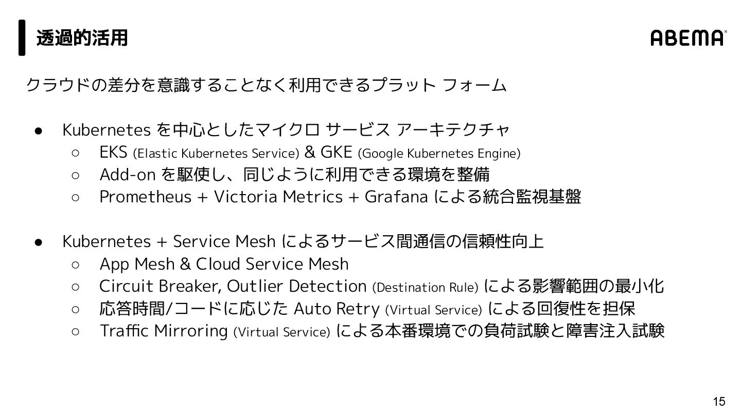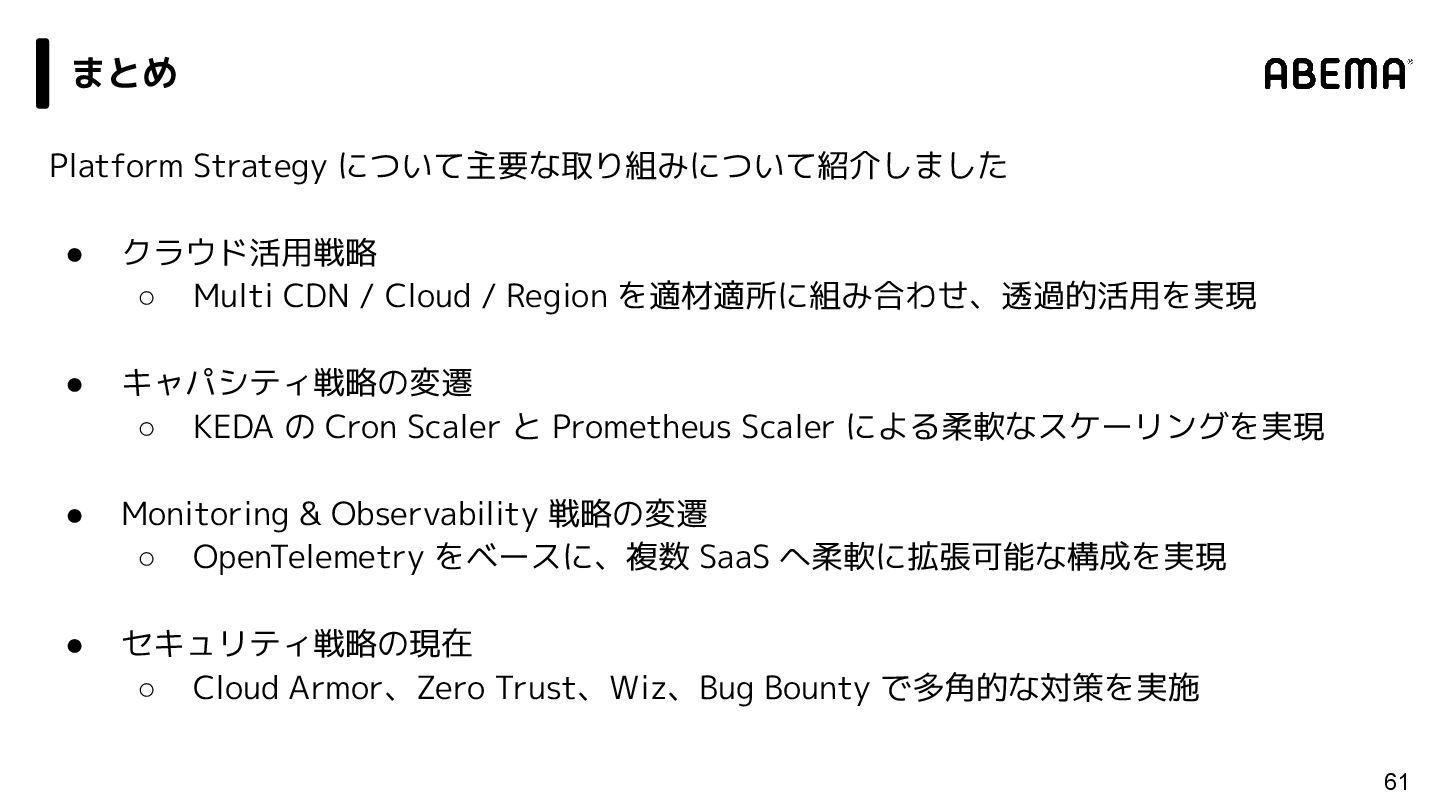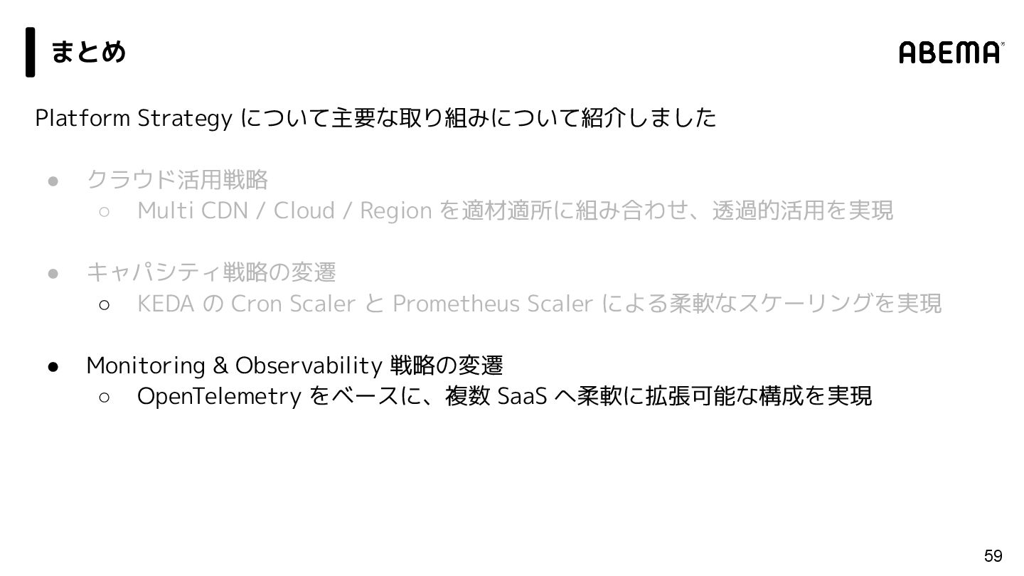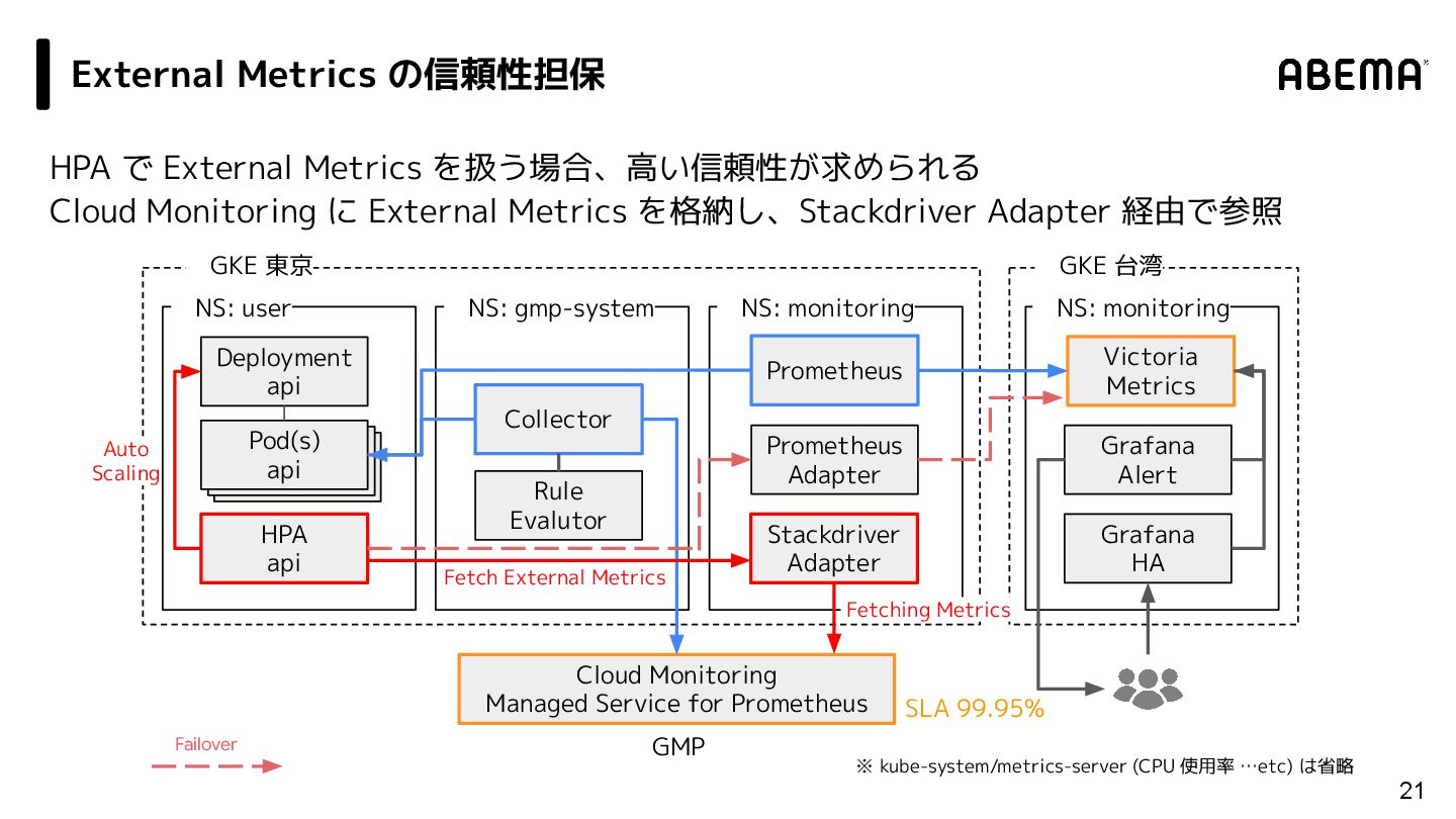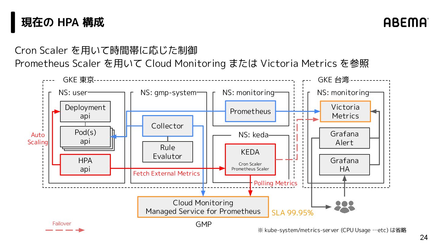 / Grafana Alloy 30 vm insert Victria Metrics vm insert Grafana Pyroscope vm insert Grafana Loki Grafana vm insert Grafana Tempo vm insert Promtail vm insert OTel Gateway vm insert Promethes Agent Mode vm insert Grafana Alloy vm insert OTel Collector vm insert Micro Services Scraping Profiles Logs Metrics gRPC / HTTP Grafana 活用強化 Send Trace by ABEMA OTel SDK