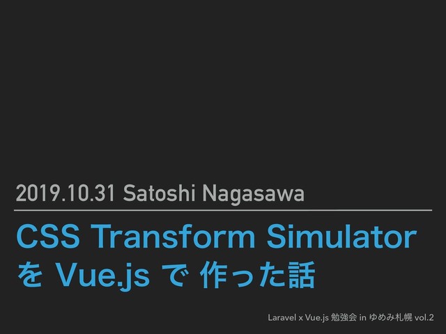 matrix(1.0, 2.0, 3.0, 4.0, 5.0, 6.0); ▸ transform: matrix3d(1, 0, 0, 0, 0, 1, 0, 0, 0, 0, 1, 0, 0, 0, 0, 1); ▸ transform: perspective(17px); ▸ transform: rotate(0.5turn); ▸ transform: rotate3d(1, 2.0, 3.0, 10deg); ▸ transform: rotateX(10deg); ▸ transform: rotateY(10deg); ▸ transform: rotateZ(10deg); ▸ transform: translate(12px, 50%); ▸ transform: translate3d(12px, 50%, 3em); ▸ transform: translateX(2em); ▸ transform: translateY(3in); ▸ transform: translateZ(2px); ▸ transform: scaleX(2); ▸ transform: scaleY(0.5); ▸ transform: scaleZ(0.3); ▸ transform: skew(30deg, 20deg); ▸ transform: skewX(30deg); ▸ transform: skewY(1.07rad); Laravel x Vue.js ษڧձ in ΏΊΈࡳຈ vol.2
