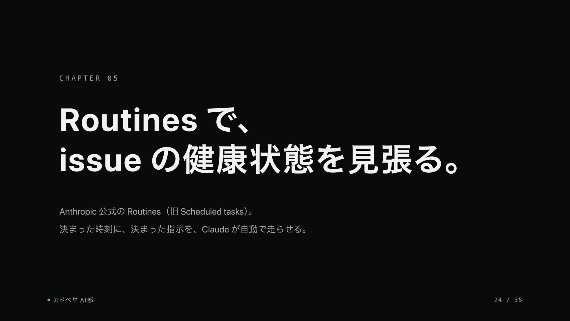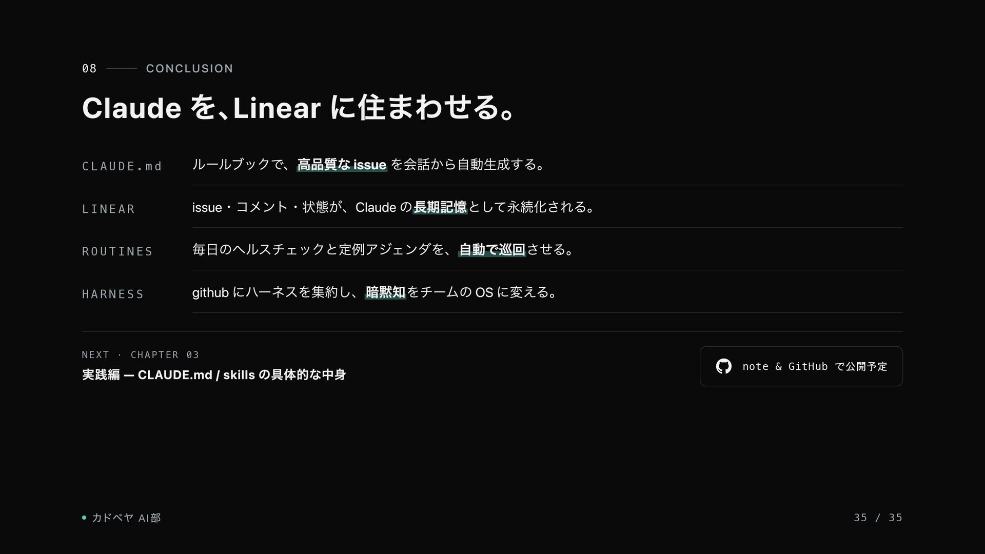 L I N E A R R O U T I N E S H A R N E S S N E X T · C H A P T E R 0 3 note & GitHub で公開予定 AI 35 / 35